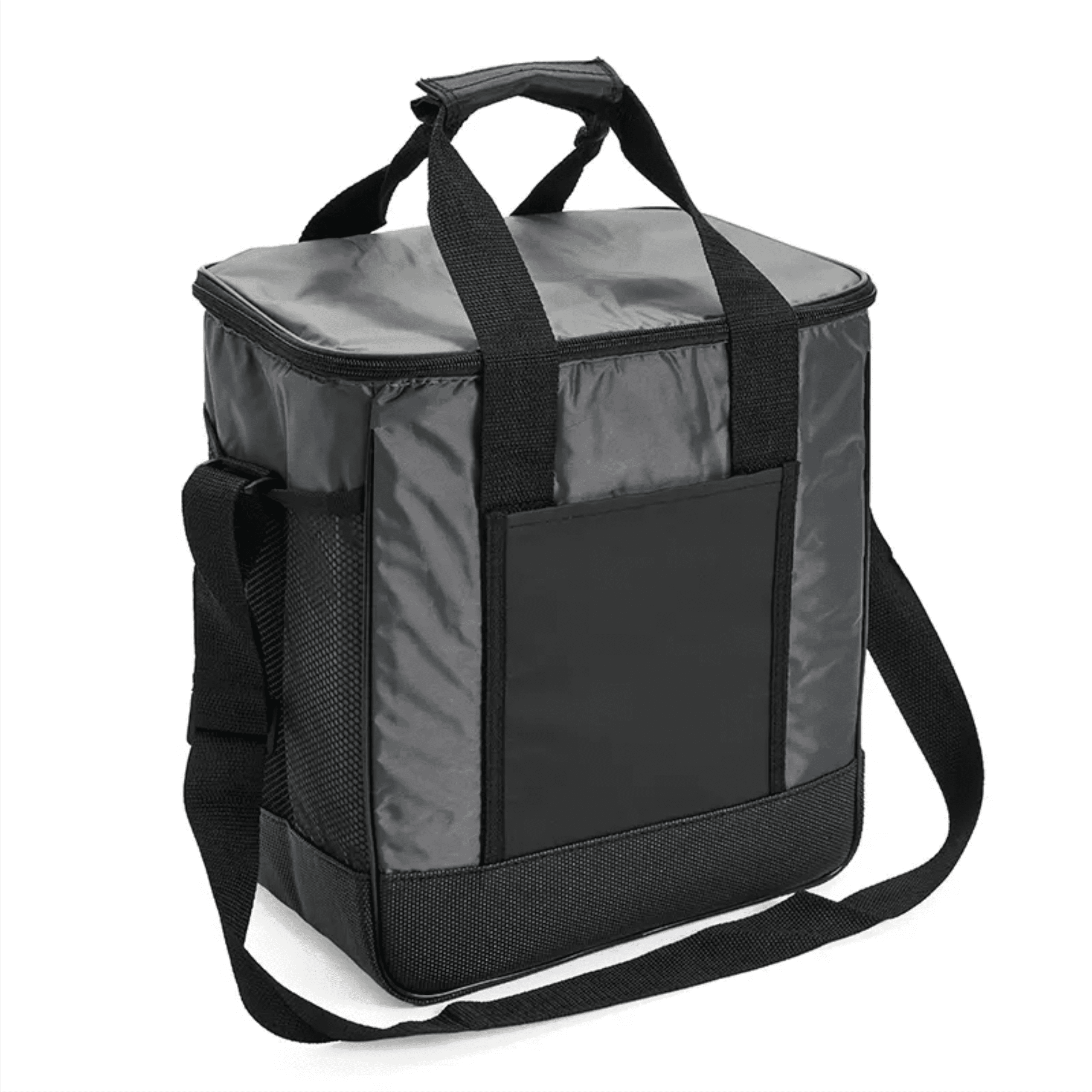 Descripción general del producto: Cooler con doble asa y correa regulable. Está confeccionado en tela 70D, con interior de aluminio y espuma PE. Cuenta con compartimiento principal con cierre, bolsillo frontal y dos asas superiores reforzadas. Es ideal para conservar alimentos y bebidas en salidas o traslados.