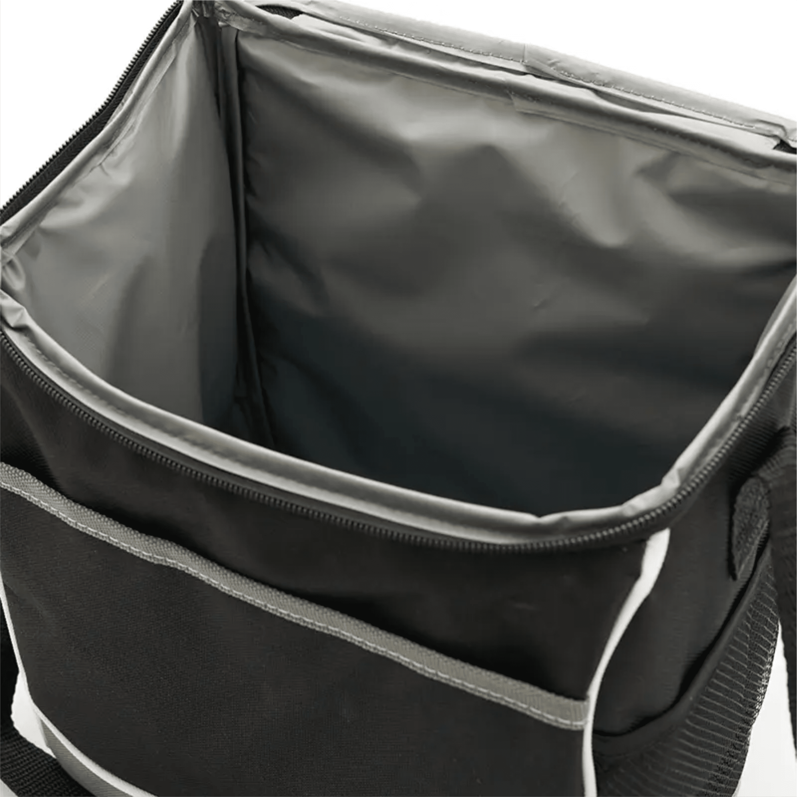 Cooler con bolsillo frontal y correa regulable. Está confeccionado en tela 600D con interior en PEVA. Cuenta con compartimiento principal térmico con cierre, bolsillo frontal externo y correa larga ajustable. Es ideal para transportar alimentos y bebidas en salidas, almuerzos o traslados diarios.