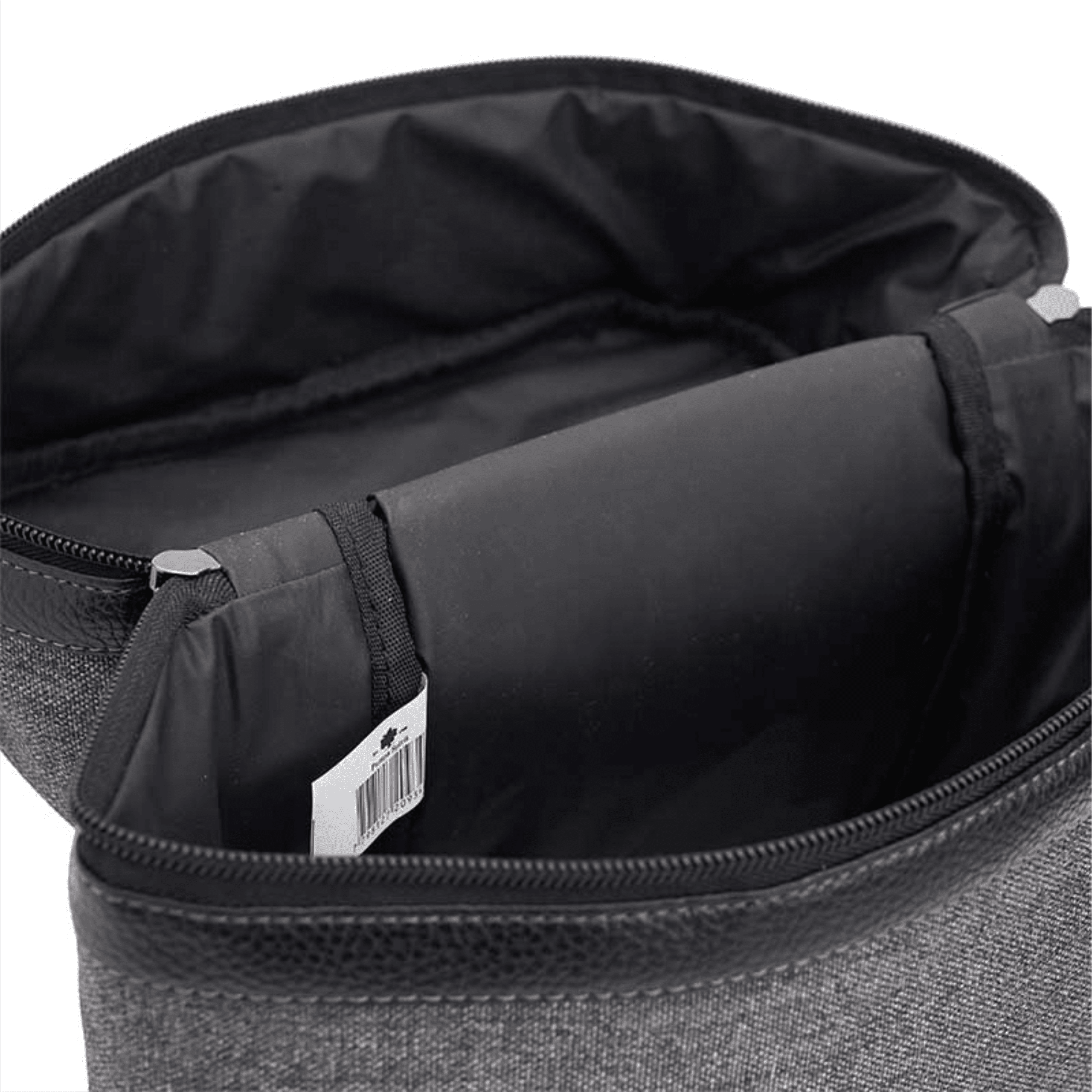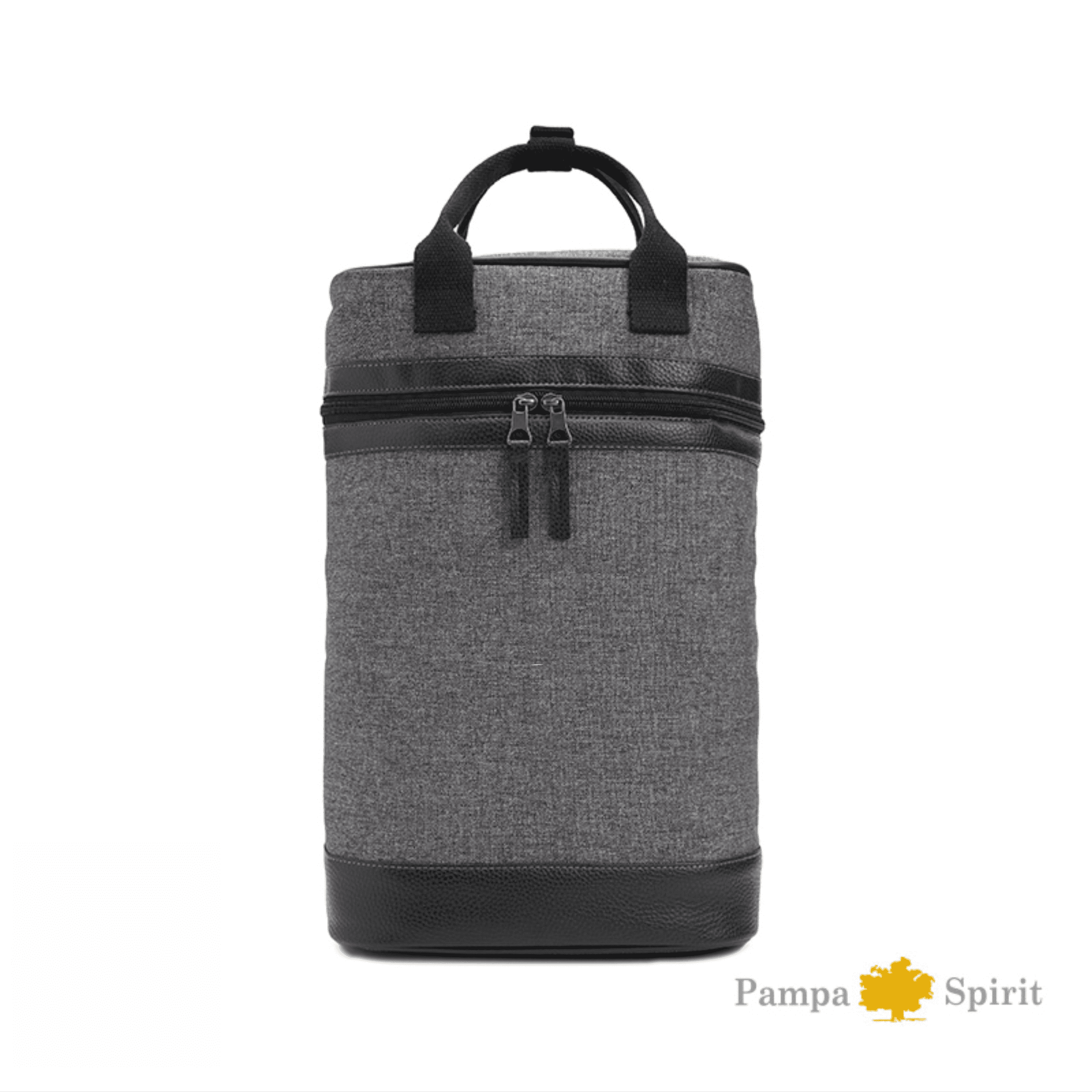 Mochila para equipo de mate Pampa Spirit, realizada en Canvas gris, con detalles en PU negro simil cuero, forrada internamente en negro y acolchada en foam. Cuenta con manijas para llevarla en una mano y correas para transportara como mochila. La foto es ilustrativa, no incluye termo ni mate. Medidas: 39 x 23 x 14 cm. Capacidad: 12 lts. Pampa Spirit.